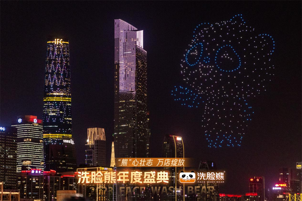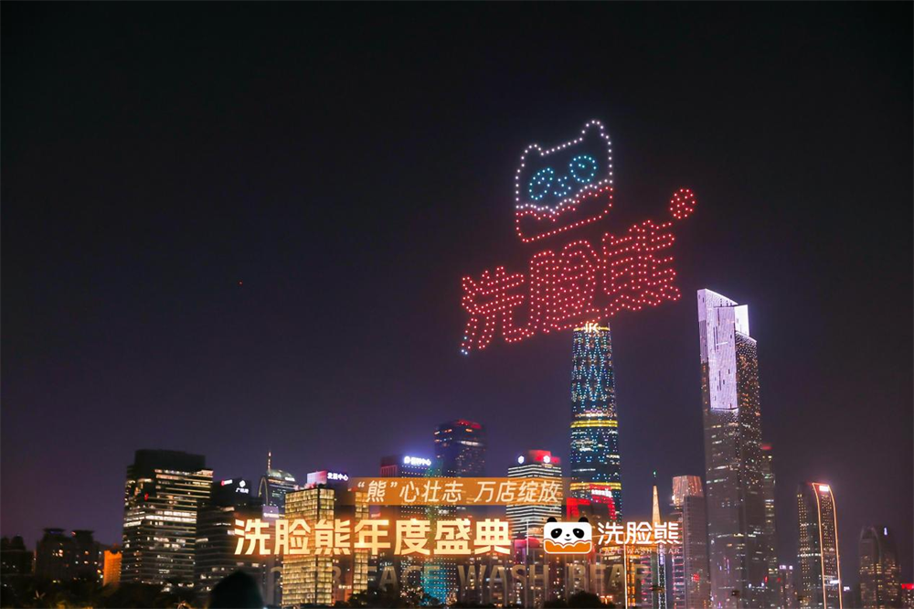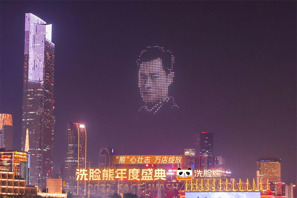 當(dāng)天的無人機(jī)表演,是洗臉熊慶祝2023年度盛典的活動(dòng)之一。